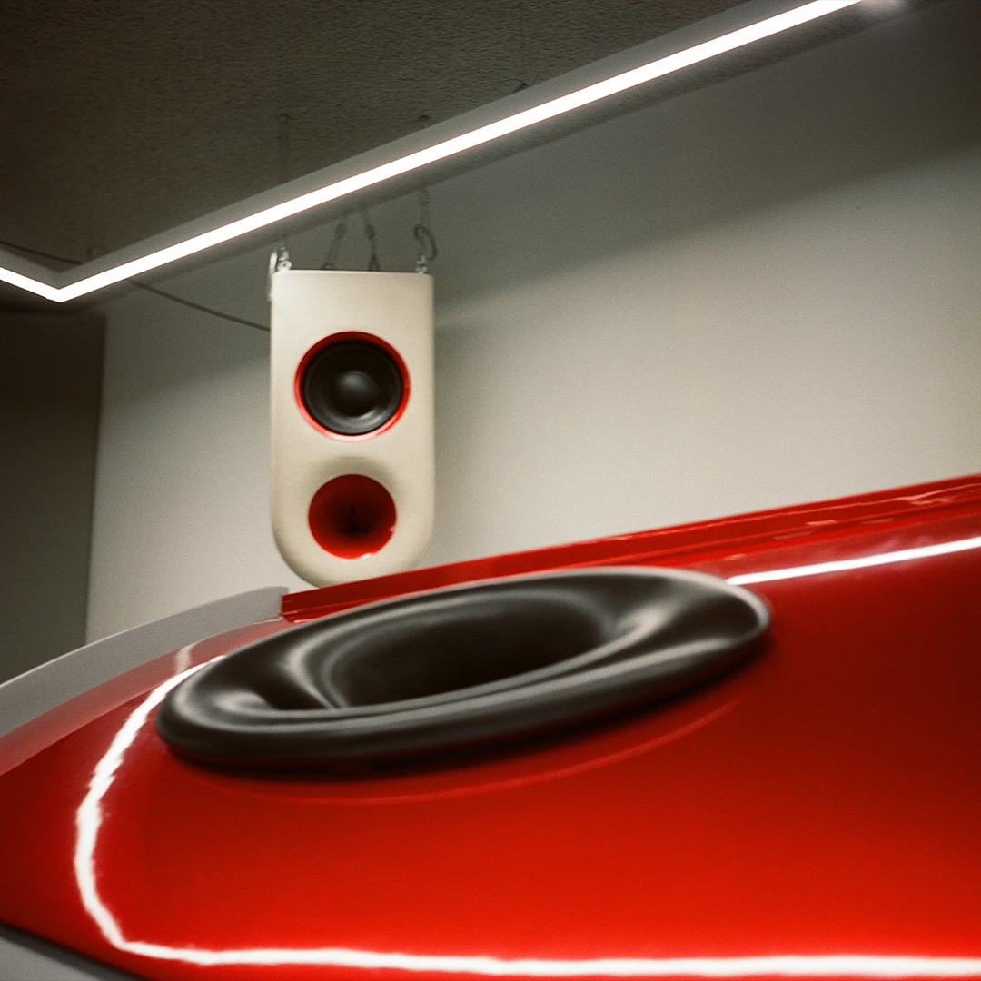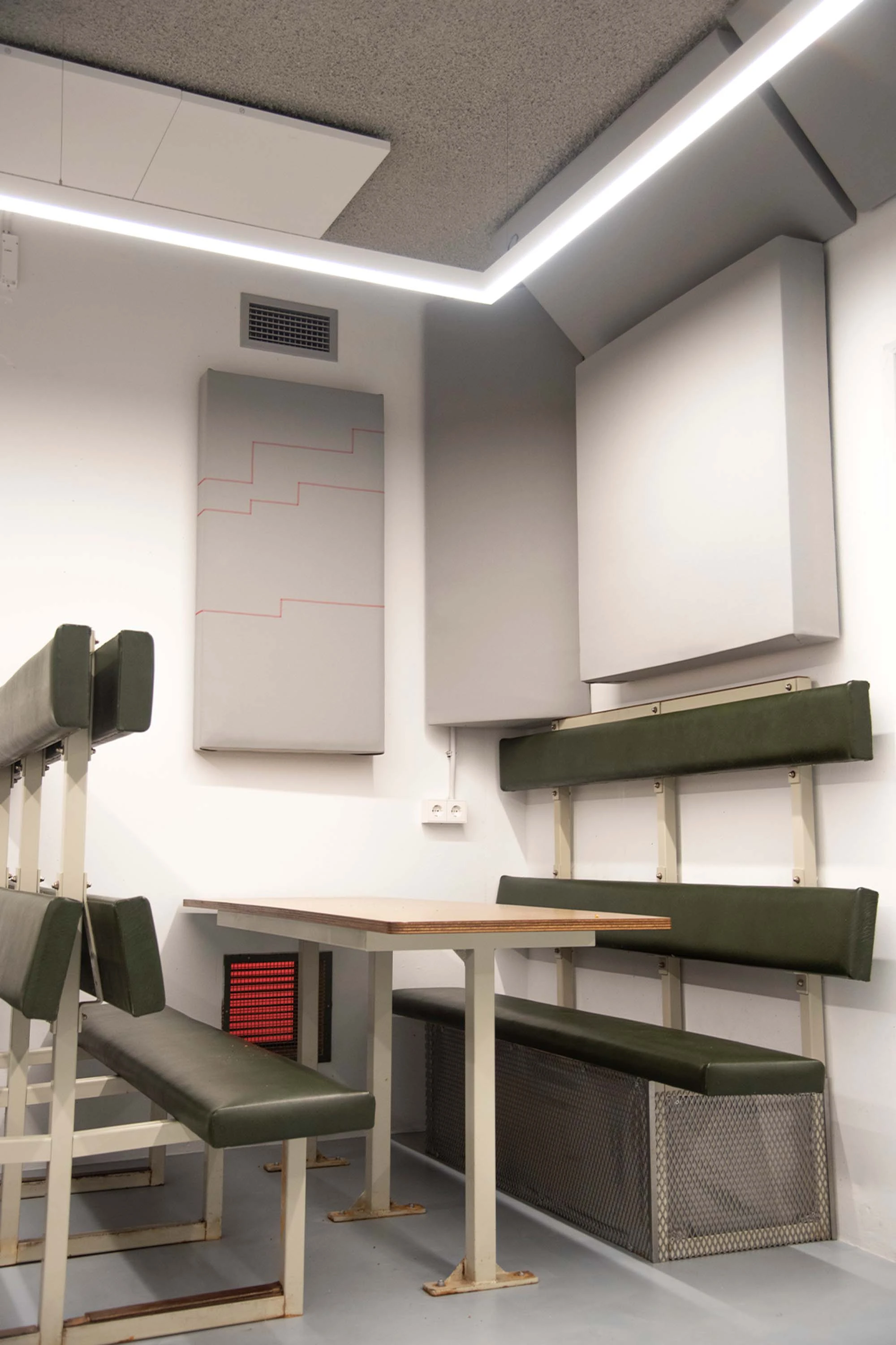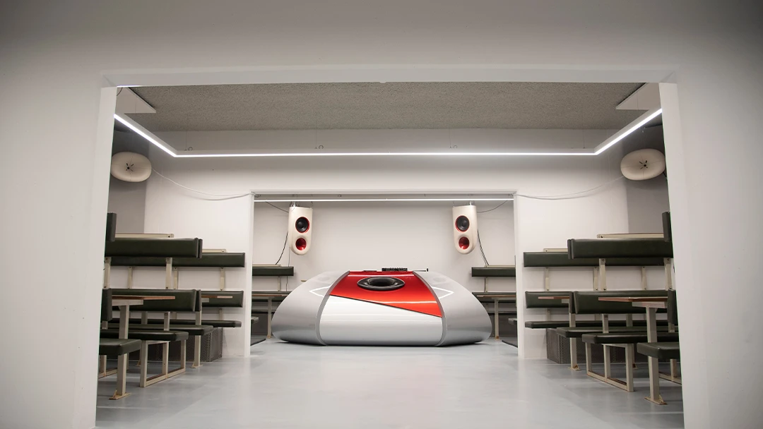 When walking through the space now, the bunker looks like something from the past and the future at the same time. The heart of Subterra is De Kern, the old canteen space. On the sides are the original canteen tables and benches, the walls are covered with selfmade sound panels, and the eye catcher is a futuristic, shiny DJ booth with a 3D-printed custom Addit soundsystem in the middle of the room. De Kern is where communal events will take place, such as listening sessions, workshops and maybe in the future, a radio station. Around De Kern is the hallway with 17 music studios where 65 musicians and producers can work on their creative projects.