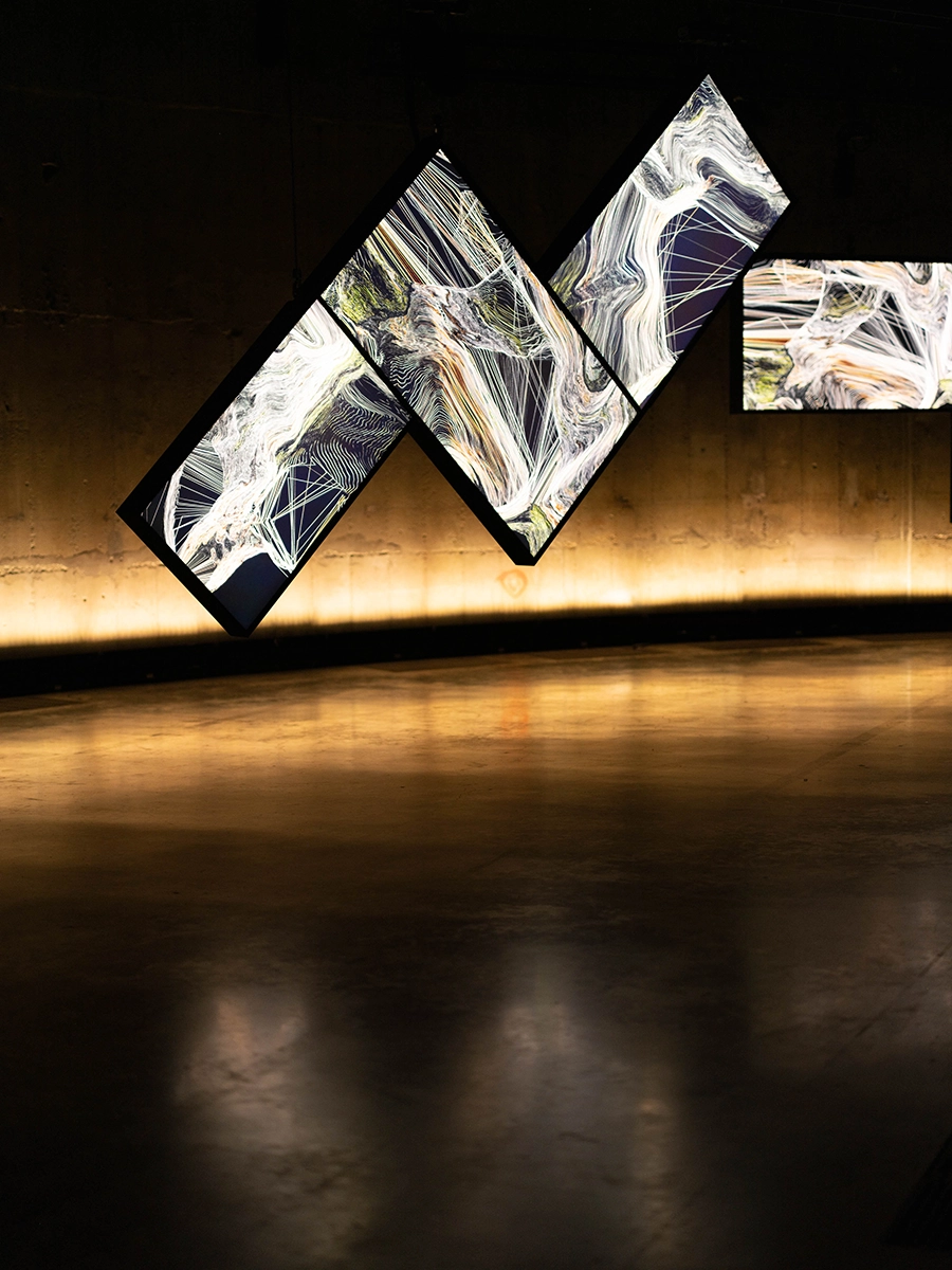 By adding a digital layer to this animistic tradition, Kurokawa achieves spectral art experiences. Both the harmonious traits of pristine nature and the raw and unbalanced aspects of urban spaces, all come to life. The personality of a world under destruction and the kindness of untouched environments are translated into the installations, resulting in many realities. Natural sources from the artist’s field recordings progressively mutate from their original form, revealing a visual and auditory universe of their own, animated with light convulsions and hypnotic pulsations.